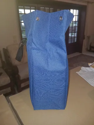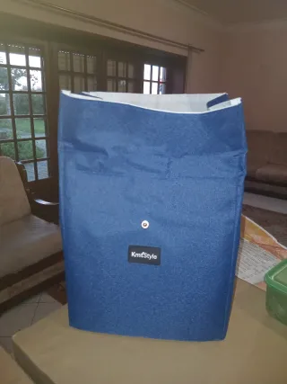 Lancheira prática e estilosa em jeans. - Fecho com botão. - Etiqueta da marca KmtStyle.