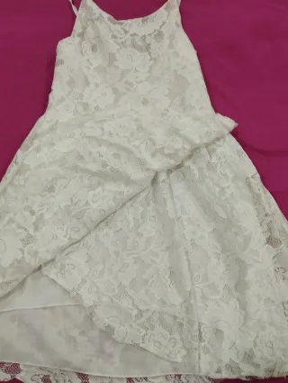 Vestido de renda branco, ideal para ocasiões especiais. Forrado a algodão. - Detalhe em renda floral. - Alças finas. - Comprimento curto.