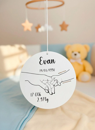 Esta placa personalizada de nascimento é uma lembrança única e cheia de significado, criada para guardar a pulseira hospitalar do seu bebê. Produzida com tecnologia de impressão 3D e com um design delicado e minimalista, é perfeita para decorar o quarto do bebê ou para oferecer como um presente especial de nascimento. ✨ Totalmente Personalizada para o Seu Bebê • Nome do bebê • Data de nascimento • Horário de nascimento • Peso ao nascer 📏 Detalhes do produto: • Cor: branco / preto • Dimensões: 16 x 16 cm Insira os dados do bebé na mensagem!