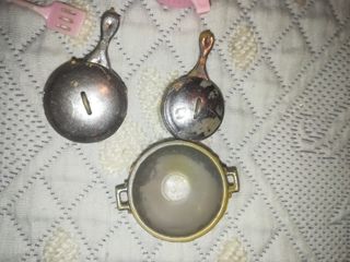 Boneca Barbie Acessórios para Cozinha, julgo que podem ser do conjunto Barbie Dream Kitchen Set de 1984 ou Barbie Living Pretty de 1987. Têm diversos danos, principalmente os tachos a cinzento
