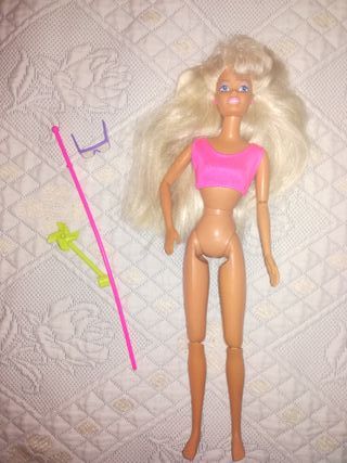 Cabeça Boneca Barbie Tropical Splash (Ref. 12446) de 1994, tem a peça do pescoço. Não tenho a certeza se tem o cabelo cortado em comprimento. E existe uma pequena falha na parte de cima, mas se for feito o penteado original, julgo que dá para disfarçar