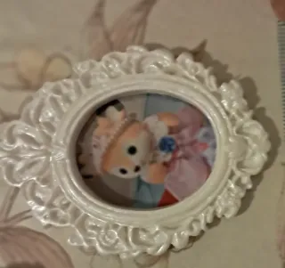 Este é um quadro decorativo da Sylvanian Families. - Moldura com detalhes ornamentados. - Imagem de um personagem Sylvanian. - Design delicado.