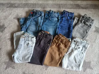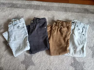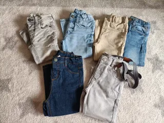 Lote com 8 pares de calças de ganga. Todas com elásticos na cintura, para facilitar o ajuste! Todas são tamanho 2/3 anos, 98cm. Em baixo são 4 calças da Zara. Em cima são 2 calças C&A e outras 2 da Primark. Tenho mais artigos para venda, poderei fazer desconto na compra de mais artigos 😉 👌
