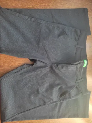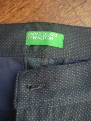 Calças clássicas da United Colors of Benetton (UCB) para a faixa etária de 13-14 anos. - Design estampado, azul marinho com pespontado em azul indigo, cuase imperceptível; - com botão interno para melhor ajuste à cintura.