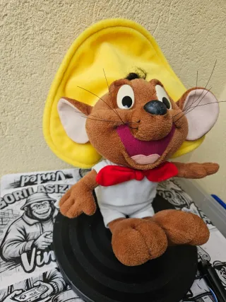 Pelúcia vintage do personagem Speedy Gonzales, da Looney Tunes. Um item colecionável. - Design clássico do personagem. - Material de pelúcia macio. - Detalhes em vermelho e amarelo.