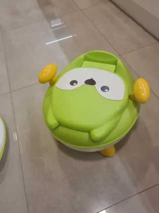 Penico/Bacio infantil confortável com design divertido e prático para o uso diário como auxílio no desfralde. - Cor verde vibrante com detalhes de personagem. - Formato ergonômico para maior conforto. - Alças laterais para segurança. - Base estável para evitar tombamento.