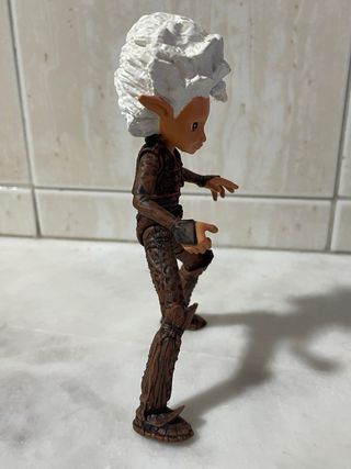 Figura colecionável do personagem Artur. - Detalhes intrincados na roupa. - Cabelo branco volumoso. - Orelhas pontudas características.