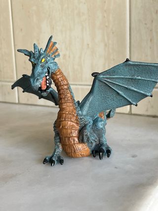 Figura de dragão detalhada, com tons de azul e laranja. em muito bom estado - Design intrincado. - Pintura realista.