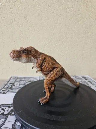 Figura detalhada de um Tiranossauro Rex da Mojo Fun. Uma peça colecionável para entusiastas de dinossauros. - Design realista. - Pintura com tons terrosos e detalhes em branco.