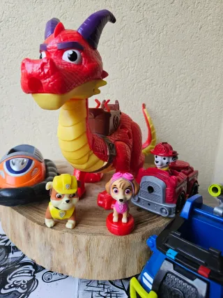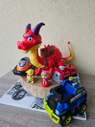 Conjunto de veículos e figuras da Patrulha Canina. - Inclui um dragão vermelho. - Inclui um veículo vermelho com figura. - Inclui um veículo azul com figura. - Inclui duas figuras de cachorros.