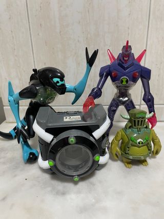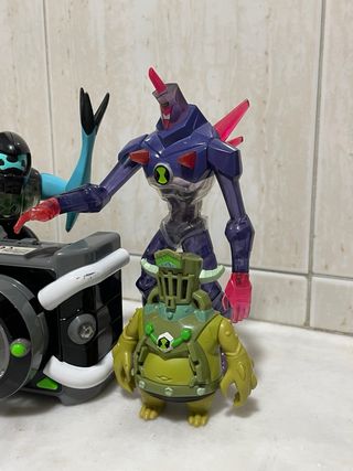 Incrível poderosa coleção de figuras e dispositivo Omnitrix de Ben 10 em bom estado geral de conservação, com alguns sinais de uso mas tudo muito bem cuidado e preservado. Relógio Omnitrix de 2017 Playmates em bom estado e a funcionar corretamente, com luzes e sons únicos. XLR8 figura em bom estado e muito bem preservada, com opção de mudar a cara e modo corrida. Toepick em bom estado e muito bem preservado. Chromastone figura translúcida em muito bom estado e muito bem preservada. Conjunto ideal para completar coleções, batalhas poderosas e brincar e com amigos. Cartoon Network, Bandai, Playmates - Ben 10 Ben Ten Cartoon Ne