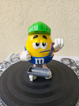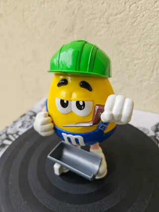 Figura colecionável do personagem Peanut Builder dos M&M's, com um design divertido. - Personagem Peanut Builder. - Cor amarela. - Detalhes de construção com capacete verde e macacão azul. - Inclui um pequeno recipiente cinza.
