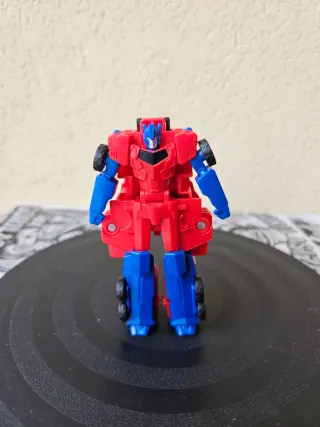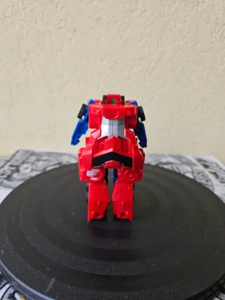 Figura de Optimus Prime da linha Legion Class da série Transformers: Robots. - Design icônico do personagem. - Cores vibrantes em vermelho e azul. - Detalhes característicos da franquia Transformers.