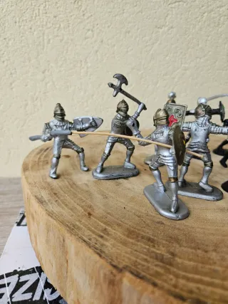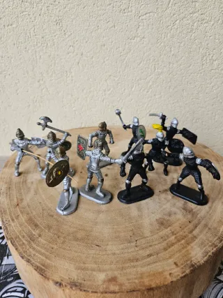 Conjunto de 10 figuras de caballeros medievales, ideal para coleccionistas o para recrear batallas históricas. - Figuras detalladas de caballeros con armaduras. - Incluye escudos y armas variadas. - Hechas de plástico resistente.