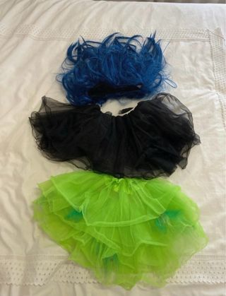 Lote artigos Carnaval - 2 saias - 1 peruca azul (penso ser da ladybug)