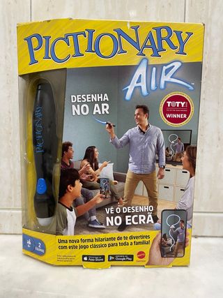 Jogo Pictionary Air, onde desenhas no ar e vês o desenho no ecrã. Novo nunca aberto. Ideal para brincadeiras em família. - Inclui caneta Pictionary Air. - Para 2 equipas. - Vencedor do prémio TOTY Toy of the Year Awards.