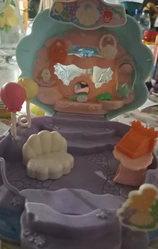 Loja da Sereia Sylvanian Families, um cenário encantador para brincar. - Design inspirado em uma concha. - Detalhes em pérolas e flores. - Cores suaves em tons de azul e lilás.