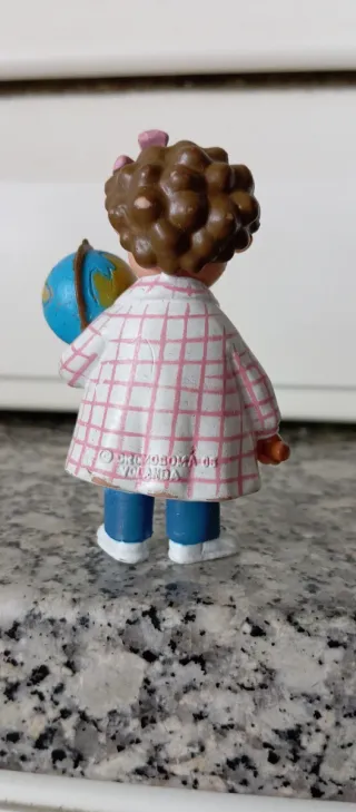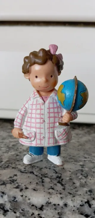 Figura decorativa de uma menina com um globo. - Detalhes em relevo no casaco. - Laço rosa no cabelo. - Segura um globo terrestre.