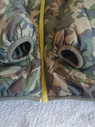 Kispo acolchoado com capuz. Forrado com pêlo borrego, e bolsos laterais. Estampado tropa. Tamanho 2/3 anos, 98cm. Tenho mais artigos para venda, poderei fazer desconto na compra de mais artigos 😉 👌