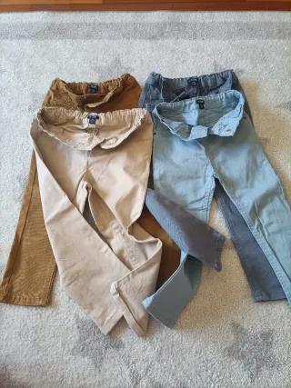 Lote com 8 pares de calças. Azul claro, cinza, camel e bege são da Kiabi. Calças verde escuro são da Mango. Calças pretas e ganga são da Primark. Calças ganga clarinhas são da Zara. Todas são tamanho 2/3 anos, 98cm. Em excelente estado. Poderei vender em separado! Tenho mais artigos para venda, poderei fazer desconto na compra de mais artigos 😉 👌