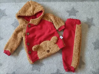 Conjunto de calças e camisola que fica casaco, com capuz. Todo em pêlo borrego, super quentinho. Tamanho 12 meses, 80cm Tenho mais artigos para venda, poderei fazer desconto na compra de mais artigos 😉 👌