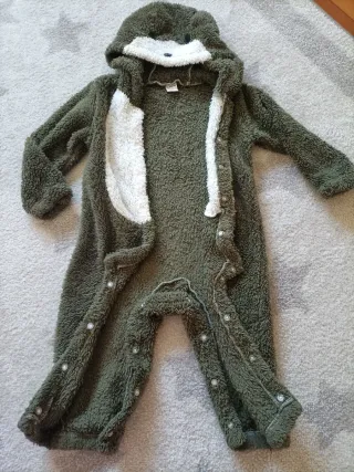 Macacão de bebé em tecido peluche, com capuz. - Cor verde-escura. - Detalhe de barriga branca e focinho. - Molas frontal e também entre pernas. Tamanho 18 meses, 86 cm da Shein Tenho mais artigos para venda, poderei fazer desconto na compra de mais artigos 😉 👌