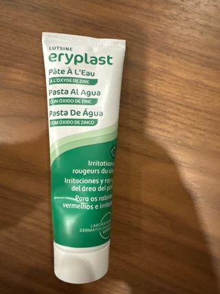 O produto da imagem é o Lutsine Eryplast Pasta de Água com Óxido de Zinco, muito popular para prevenir e tratar assaduras e vermelhidão na zona da fralda.