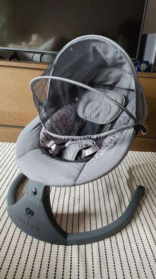 Espreguiçadeira Kinderkraft Lumi 2 eletrónica Função 2 em 1: espreguiçadeira com função de embalar automática. 5 velocidades de embalo 10 músicas de embalar incluídas 2 brinquedos destacáveis pendurados Cobertura ajustável e rede mosquiteira Ligação por bluetooth ao telemóvel Inclui comando à distância Em perfeitas condições, praticamente sem uso.