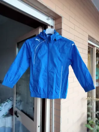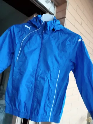 Casaco desportivo da marca Puma, em azul. - Com capuz. - Fecho completo. - Detalhes em branco.