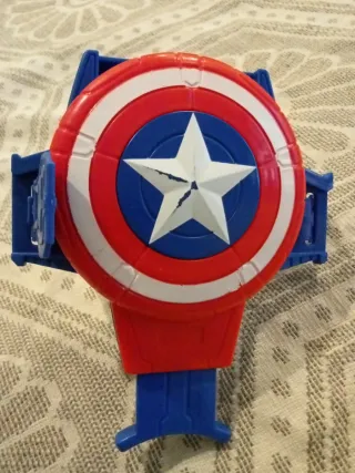 Pulseira temática do Capitão América, inspirada nos Vingadores. - Design icônico do escudo. - Detalhes em vermelho, branco e azul.