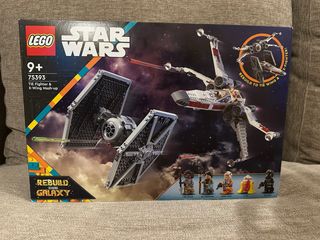 Conjunto LEGO Star Wars 75393 TIE Fighter & X-Wing Mash-up. - Incluye las minifiguras de Rebel Pilot, LP-8, The Pilot, Rebel Scala y Big Greenling. - Permite construir un TIE Fighter y un X-Wing. - Parte de la serie Rebuild the Galaxy.