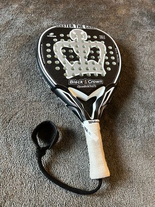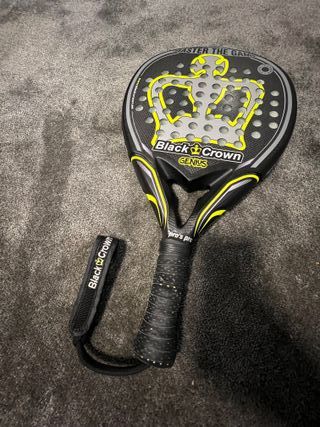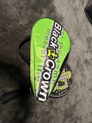 Black Crown Special Soft. Formato lágrima. Caras em carbono. Muy equilibrada. Amplio punto dulce y muy buena salida de pelota. Excelsa en defensa. Fácil de jugar. Amiga del usuario (lesiones poco probables). Tacto medio blando. Utilizada, me encanta. Tienes golpes con salida de tinta de los cristales. Pero nada estructural. Está en perfectas condiciones. 1 año. 363 gr