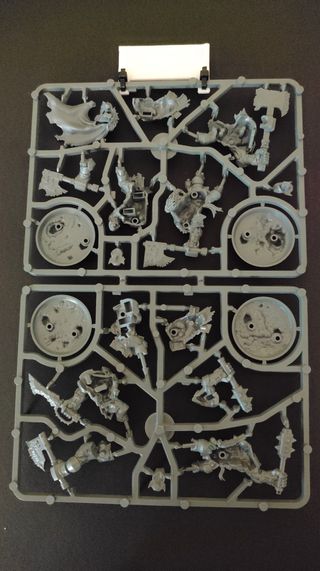 Conjunto de miniaturas da Warhammer, Da Kunnin Krew Stormbringer. As peças estão em plástico cinzento, prontas para montagem e pintura. Inclui todas as peças mostradas nas imagens. Ideal para expandir seu exército Warhammer!