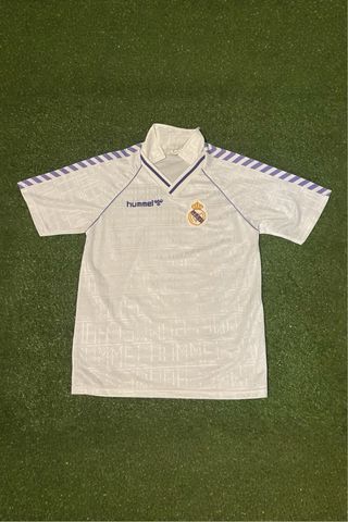 Authentic Vintage Real Madrid Home Jersey (1989/1991) Great Vintage Condition. The fabric is clean with the iconic "shadow" pattern still very visible. Colors are bright. The neck tag shows significant wear/fading due to age (common for jerseys from this era), but the shirt is a 100% original Hummel piece from the late 80s/early 90s. This jersey is made of 100% heavy-duty Polyester featuring the iconic 'shadow jacquard' weave characteristic of the early 90s. The fabric has a high-quality satin sheen with the Real Madrid pattern integrated directly into the knit. #RealMadrid #VintageFootball #Hummel #RetroFootball #HalaMadrid