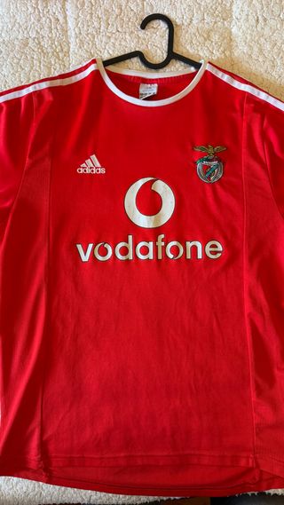Camisola oficial do Sport Lisboa e Benfica da época 2003/2004. - Logo da Adidas. - Patrocínio Vodafone. - Escudo do clube.