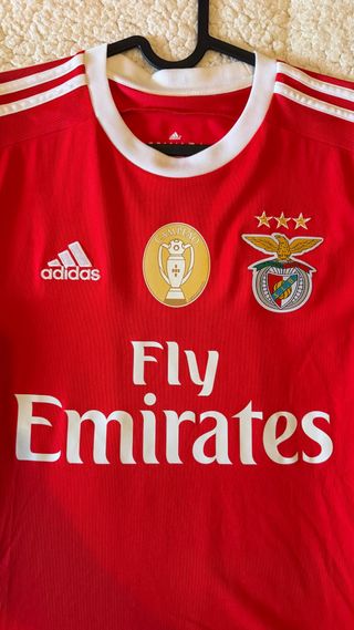 Camisola oficial do Sport Lisboa e Benfica da época 2015/2016. - Logo da Adidas. - Emblema do clube. - Patrocínio Fly Emirates.