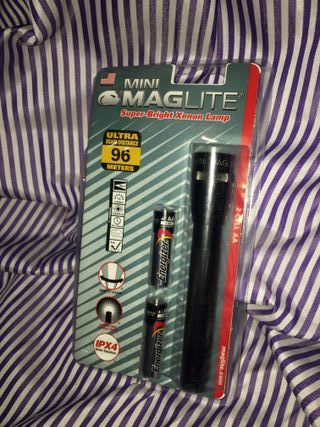 Marca: MAGLITE Maglite Minimag - Lanterna de acampamento e caminhadas, cor preta Nova em caixa selada Nunca aberta Qualidade, resistência e fiabilidade 14 Lumens 107 g Blister 107 gramas Peso com pilhas 107 g. Maglite é uma marca renomada, associada à qualidade, design e durabilidade
