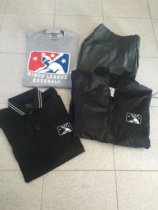 Conjunto de Baseball Para árbitro referente a liga secundária de Baseball da América Conjunto constituído por: Calças tamanho 30 Regular Tshirt tamanho M Polo tamanho M Corta vento tamanho S Em perfeito estado Sem defeitos Original Smitty