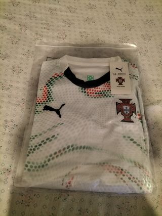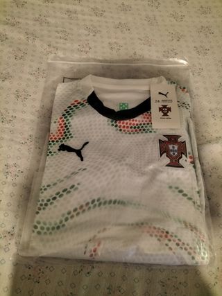 Camisola de Portugal para criança, tamanho 24, da marca Puma. Está nova, em excelente estado. Traz calções incluídos. - Camisola oficial. - Tamanho 24. - Marca Puma.
