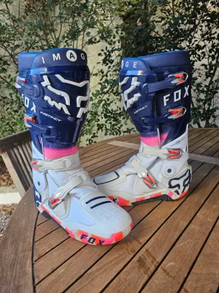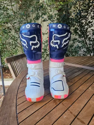 Botas de motocross Fox Instinct 2, edição limitada Ryvr. - Cor azul marinho e branco, rosa e laranja. - Fecho com fivelas ajustáveis. - Design moderno e arrojado. - Articulas e confortáveis - Topo de Gama da Fox (Novo Modelo) 25 - Pouco uso, usadas apenas 3 vezes. Estão em muito bom estado como se vê nas fotos Pvp 539eur.. Agora apenas... 375eur