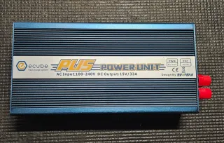 Fonte de alimentação EV-PEAK com entrada AC de 100-240V e saída DC de 15V/33A. Possui design robusto e acabamento em alumínio. - Entrada AC: 100-240V - Saída DC: 15V/33A - Design by EV-PEAK - Tecnologia PWM e PFC