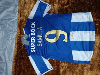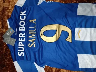 Camisola de futebol do FC Porto, com o nome SAMU.A e número 9 nas costas. - Cor azul com detalhes brancos. - Logo do FC Porto visível. - Tamanho M. - envio em 24h. - envio rápido e bem embalado.