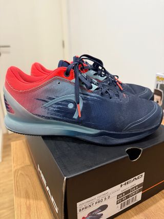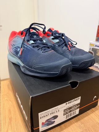 Sapatilhas de performance Head Sprint Pro 3.0 em azul e vermelho. - Modelo: Sprint Pro 3.0 - Cor: Dress Blue/Neon Red - Tamanho: UK 8 / US 9 / EU 42 / CM 27 - Utilizadas no máximo 6 vezes.