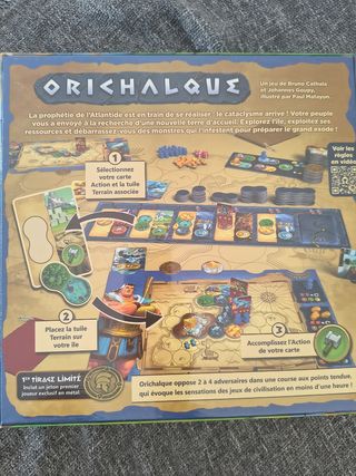 Jogo de tabuleiro Orichalque. - Jogo de Bruno Cathala & Johannes Goupy. - Ilustrado por Paul Mafayon. - Para 2-4 jogadores. - Idade: 12+. - Duração: 45 minutos. Versão francesa sem dependência de língua.