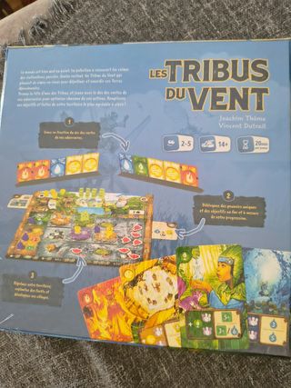 Jogo de tabuleiro Les Tribus du Vent. - Ilustrações vibrantes e temáticas de aventura. - Componentes de qualidade para uma experiência imersiva. Versão francesa sem dependência de língua.