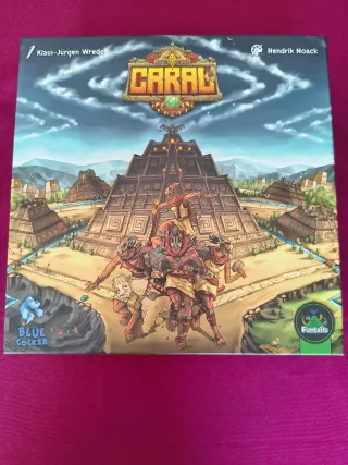 Jogo de tabuleiro Caral, uma aventura estratégica. - Design de Klaus-Jürgen Wrede. - Ilustrações de Hendrik Noack. - Selo Blue Cocker. - Selo Funtails.