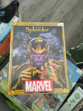 Jogo de tabuleiro Splendor com tema Marvel. Uma edição especial para fãs do universo Marvel. Versão francesa - Inclui cartas e fichas. - Arte inspirada nos Vingadores.