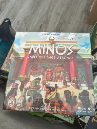 Jogo de tabuleiro Minos: L'Aube de L'Âge du Bronze. Sem dependência de língua - Desenvolvido por David Turczi e Kasper Frydendkiewicz. - Para 1-4 jogadores. - Idade recomendada: 14+. - Duração: 90-150 minutos.