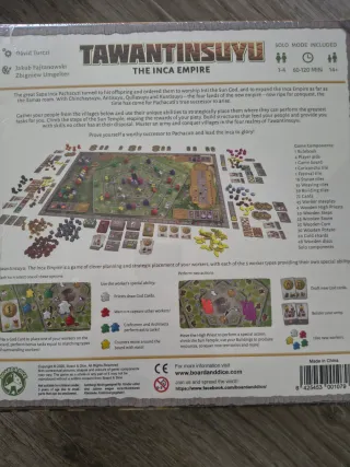 Jogo de tabuleiro Tawantinsuyu: The Inca Empire. - Inclui modo solo. - Para 1-4 jogadores. - Duração de 60-120 minutos. - Recomendado para maiores de 14 anos.