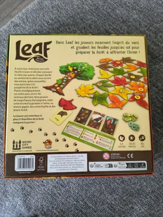 Jogo de tabuleiro Leaf, com arte temática de outono e um ouriço, versão francesa. - Jogo de estratégia para 1-4 jogadores. - Componentes de alta qualidade. - Ilustrações de Tim Eisner e Angela Rizza.